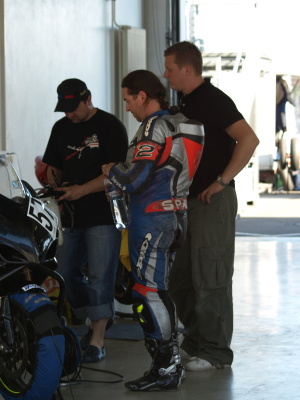 Při ranní rozpravě ještě nic nenapovídalo tomu, co nás v následujících hodinách čeká za drama. Zhruba půlhodinu před startem se zatáhlo, spustil se hustý déšť a tím se zbořily všechny strategie připravené pro závod. Zvášť Roman měl hlavu v presu, protože právě on je hlavním "stratégem" IBOS Eli Racingu... Kamil s Daliborem začali okamžitě chystat moji R1 na mokro, když přišlo rozhodnutí od vedení závodu o posunu startu. Ten byl nakonec posunut ještě několikrát, až padlo rozhodnutí, že v 10:15h sekonečně jede. Mezitím se na obloze několikrát vystřídalo sluníčko s deštěm, což zvlášť Romana přívádělo téměř k šílenství :-)