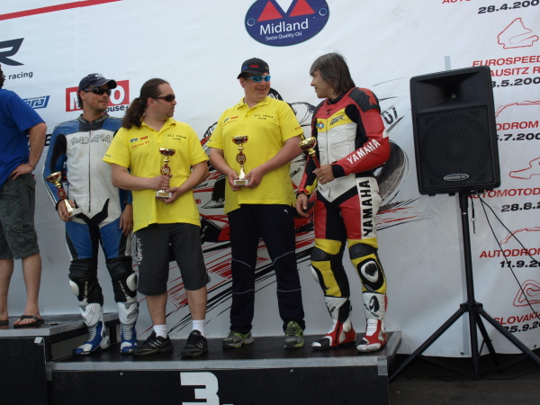 Z posledního místa to dotáhnout na bednu - kluci, to je přece paráda!!! Všichni jsem si pořádně mákli, my jezdci za řídítkama, Newmi, Kamil a Dalibor v boxech na našich motorkách, Lenka na boxové zdi při hlídání, při střídáních - všichni do jednoho jsme si to oddřeli... ale stálo to za to!