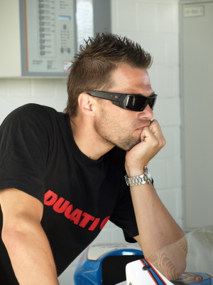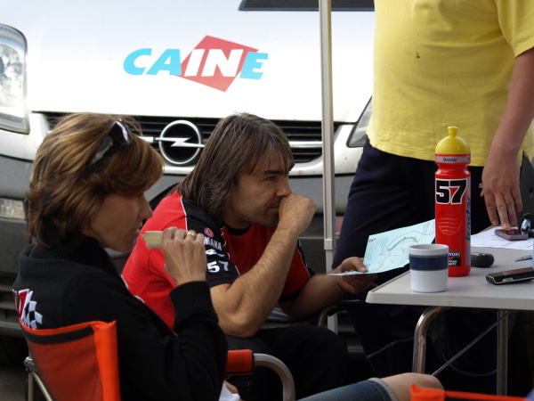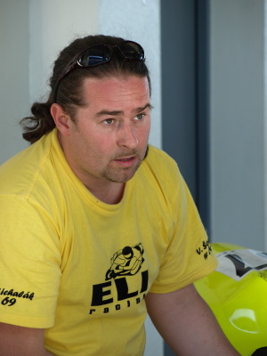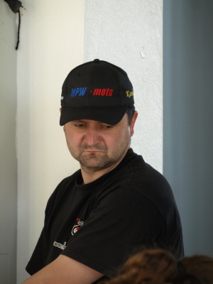 Nakonec padlo rozhodnutí, že vyjedu do zaváděcího kola na mokrých a pokud to podmínky dovolí, tak zajedu a Víťa odstratuje do zahřívacího kola už na motorce připravené klasicky na sucho. A tak se i stalo - trať byla z více jak 80% suchá a tak jsem hned zajel a Víťa vyjížděl do zahřívacího kola z boxové uličky. Po zkušenostech z Mistrovství ČR jsme předpokládali, že normálně dojede na start a postaví se na 4. místo, které jsme si vyjeli v kvalifikaci. Naší neomluvitelnou chybou je, že jsme se neseznámili s pravidly, která se v tomto od MČR nebo AlpeAdria šampionátu zásadně liší - pořadatelé nás postavili na samý konec startovního pole. Pro Víťu to byla, samozřejmě, infarktová situace, ale zřejmě ho i pořádně "nastartovala", protože jel jako o život - po 45minutách mi předával pomyslný štafetový kolík na 13. místě!